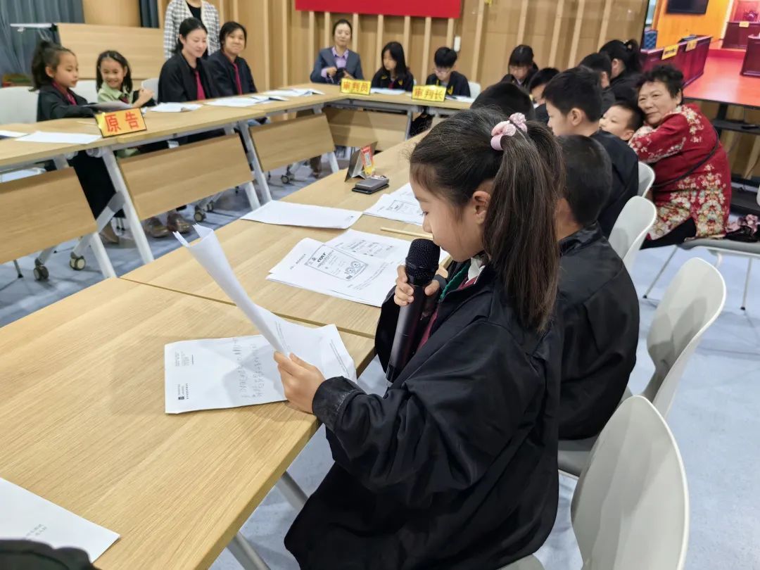 紧接着,同学们分别选择了心仪的阵营,并邀请家长助阵,原被告及法官接受了半小时的培训,学习庭审流程和如何基于证据准备庭审发言,进一步熟悉了法庭庭审的基本知识,并对《家庭教育促进法》《未成年人保护法》这两部法律有了基本认识。