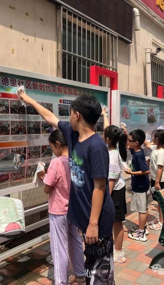 裕德里社区开展了一场别开生面的“学雷锋,争做新时代好少年”活动。活动开始,社区工作人员通过讲述雷锋故事,激发大家的学习热情。随后,小志愿者们分工明确,有的负责擦拭宣传栏上的灰尘,有的则细心清理粘贴在上面的小广告。汗水浸湿了衣背,但看到宣传栏逐渐焕发出新的光彩,每个人的脸上都洋溢着满足的笑容。这次活动让孩子们深刻体会到了劳动的价值和团队合作的力量,今后将更加积极地参与社区的各项公益活动。