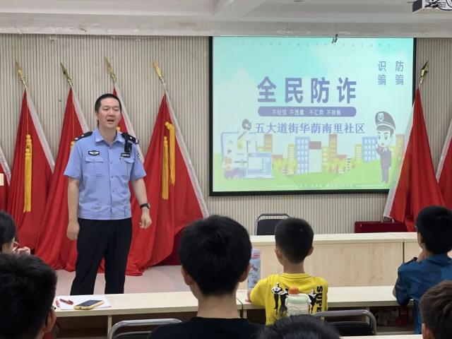 华荫南里社区民警在社区会议室开展“反诈宣传进社区 护航青春伴成长”活动。活动中,王警官向孩子们讲解什么是电信诈骗以及常见的电信诈骗手段,重点针对孩子们的年龄特点,以“游戏充值”“打赏主播”等真实的案例,让他们对网络诈骗有了更直观的认识和更强烈的警惕。此次暑期青少年反诈宣传活动,?不仅增强了青少年的防骗意识和能力,?也为社区营造了良好的安全氛围,帮助孩子们从案例中明白电信诈骗的危害,提高青少年防范电信诈骗的警惕性。