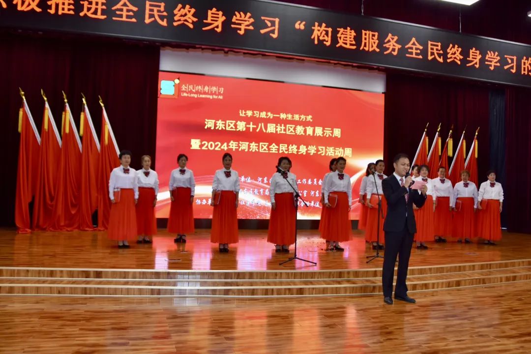 日前,河东区第十八届社区教育展示周暨2024年全民终身学习活动周启动仪式在河东区图书馆嘉华中心馆举行。“区、校终身学习联合体”单位代表,社区教育工作者及获奖代表等130余人参加活动。